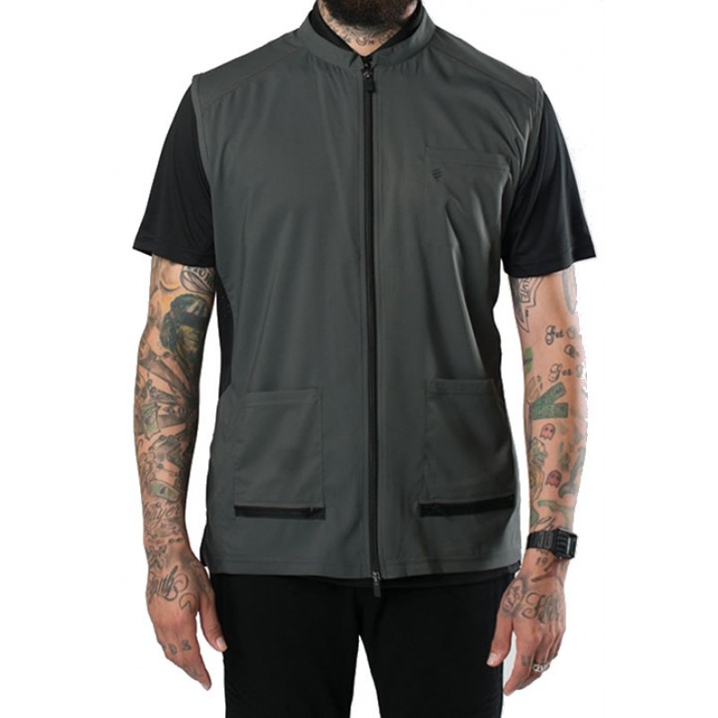Vest features lightweight material, vented side panels and a 2-way zipper for