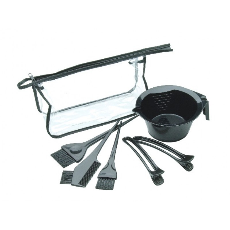 Includes: 1 Color bowl, 3 color brushes, 2 hair clips, and 1 clear zip case