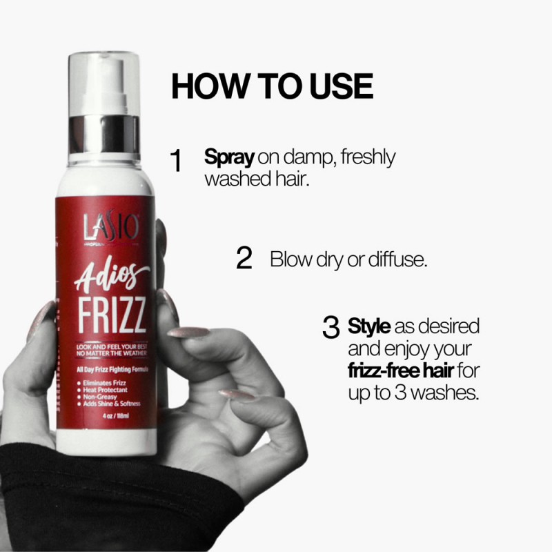 hair. Lasio Adios Frizz Spray is a lightweight, keratin-safe styling spray