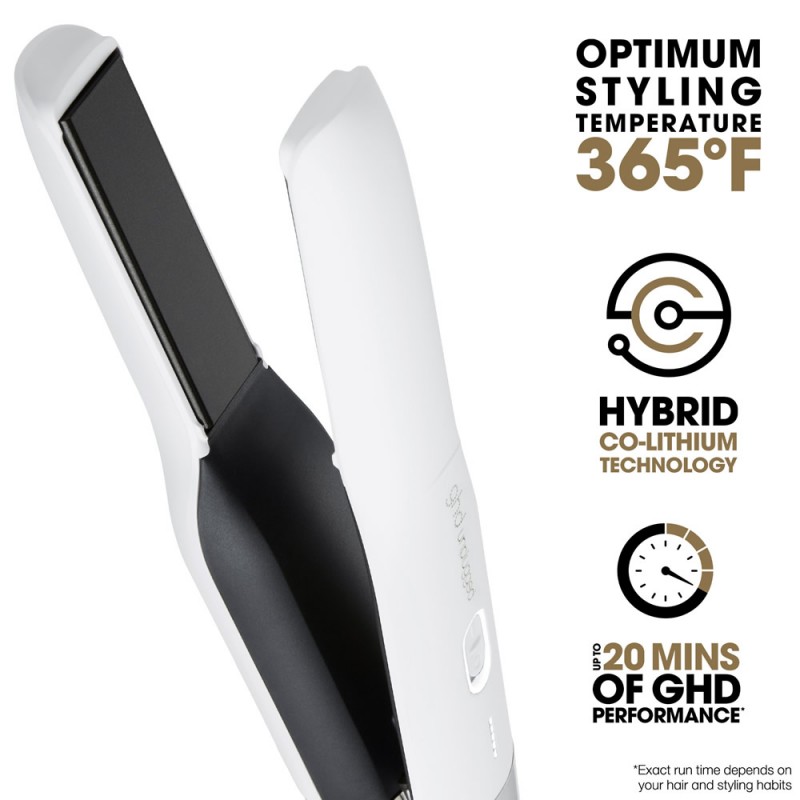 • Up to 20 minutes of cordless styling Our 1st cordless styler delivers ghd cordless styling performance for upt to 20 minutes* no matter where you are. (*Exact run time depends on your hair and styling habits)