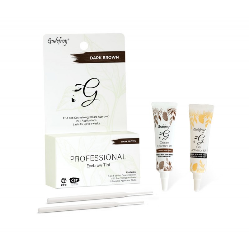 Godefroy Professional Brow Tint is a non-toxic formula that contains no hydrogen peroxide or synthetic dyes (PPD). Formulated with natural pigments, it’s a great alternative for individuals with sensitivities to traditional hair color dyes. It’s especially safe and effective for use on or around the eye area. Delivers permanent Lash & Brow color results for up to 4 weeks.