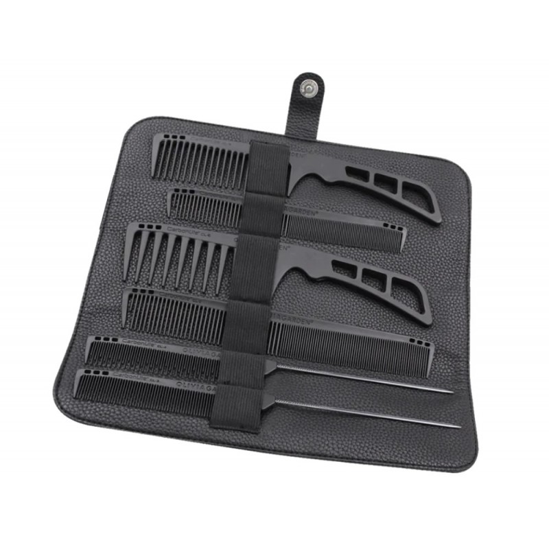 Set Includes 1 each CarbonLite comb in folding leatherette pouch