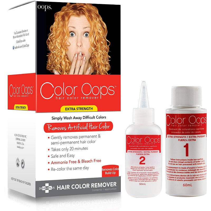 Color Oops Extra Strength Hair Color Remover is an easy and effective way to reverse undesirable hair color by shrinking the dye molecules, allowing you to simply wash them away. This bleach-free and ammonia-free process means you can safely re-color your hair the same day.