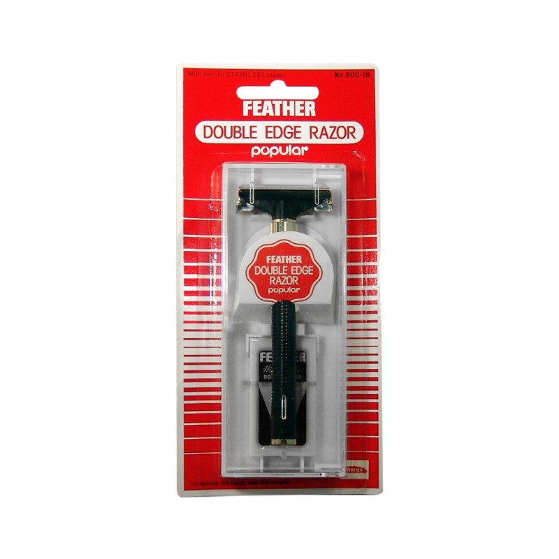 The Feather Popular Double Edge Razor includes: Feather Popular Double Edge Razor, 2 Feather Hi-Stainless Double Edge Blades.