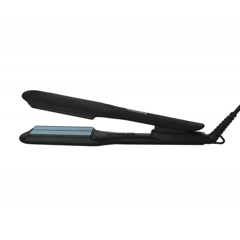 Silicone Speed Strips help provide faster straightening and increased shine. NanoIonic™ Mineral helps condition, seal and smooth the hair cuticle. Far Infrared Technology allows for quick styling without damage. BioCeramic Heaters maintain constant heat. 400 degrees Fahrenheit.