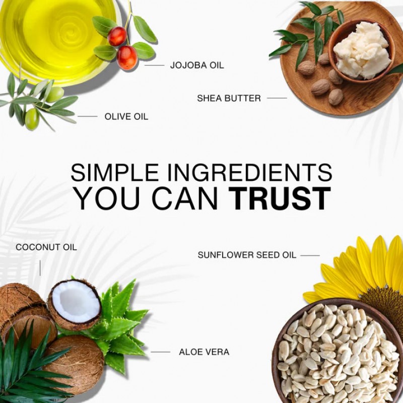 Infused with ingredients you can trust: Jojoba Oil, Shea Butter, Olive Oil, Coconut Oil, Sunflower Seed Oil & Aloe Vera