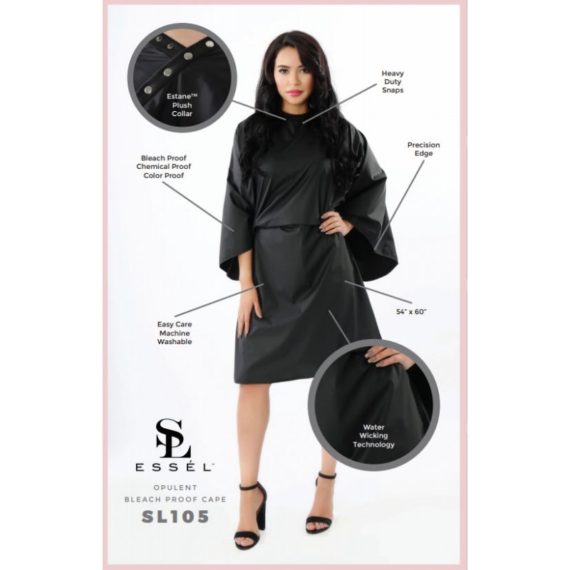 The all-purpose ESSEL Opulent Bleach Proof Cape has been crafted with the highest quality nylon infused fibers and strengthened with poly-infused thread for extra protection. This ensures the cape will last longer than the average materials on the market.