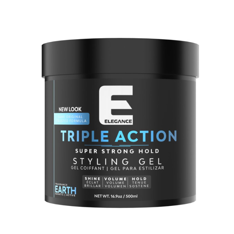 Elegance Triple Action Hair Gel provides a strong hold, extreme volume and attractive shine while providing a refreshing fragrance. This styling gel doesn't leave your hair oily or with residue. Elegance products are designed for men and women and can be used on all types of hair.