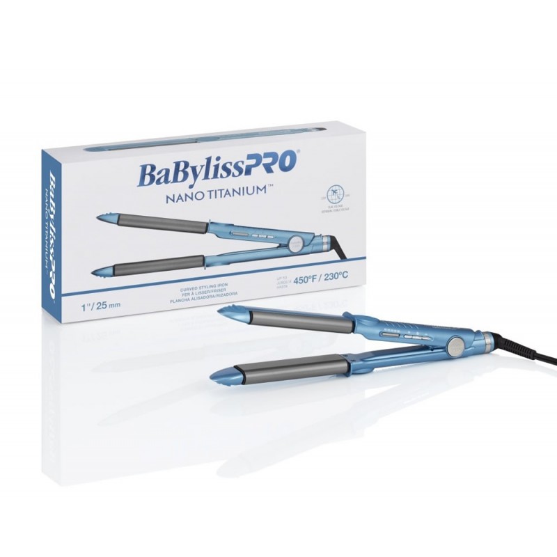 Straighten, wave and curl all with one tool. The BaBylissPRO® Nano TitaniumTM 1" Curved Styling Iron features curved side plates to create the perfect ribbon curl or wave or to tame frizz for smooth, straight hair.