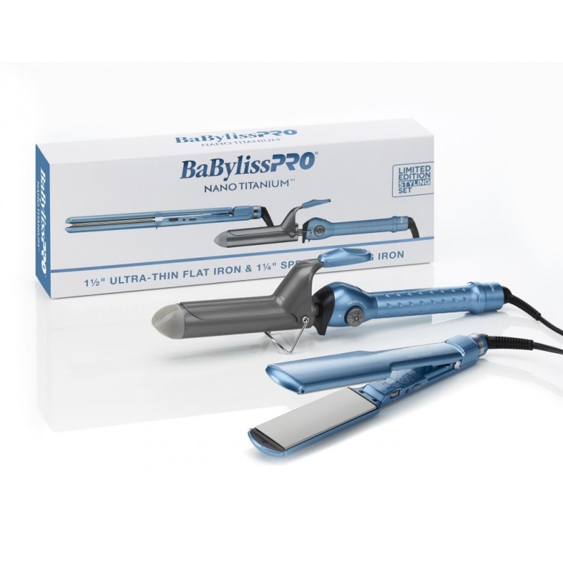#BNTPP69 BabylissPro Nano Titanium Ultra Thin Straightener & Spring Iron Combo
