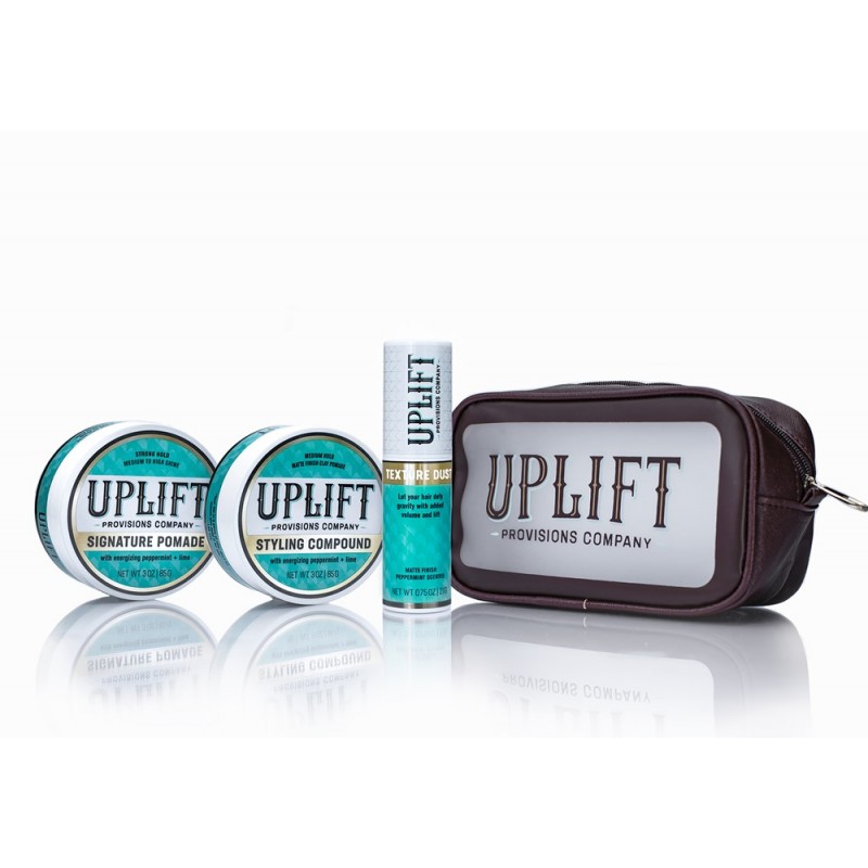 go. The kit includes a stylish travel bag branded with the Uplift logo,
