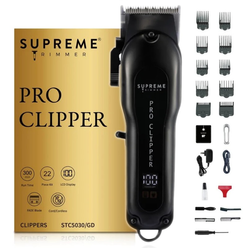 The Pro Clipper is perfect for beginners and home use, featuring a powerful 6000-6800 RPM motor and sharp blades for smooth, efficient cuts. Built for long-lasting use, it offers up to 300 minutes of continuous operation. The smart LCD display keeps you informed on battery life, while the adjustable lever allows for precise cutting or zero-gapping. Perfect for de-bulking, creating clean lines, and covering all size requirements with 10 patented magnetic size guards.
