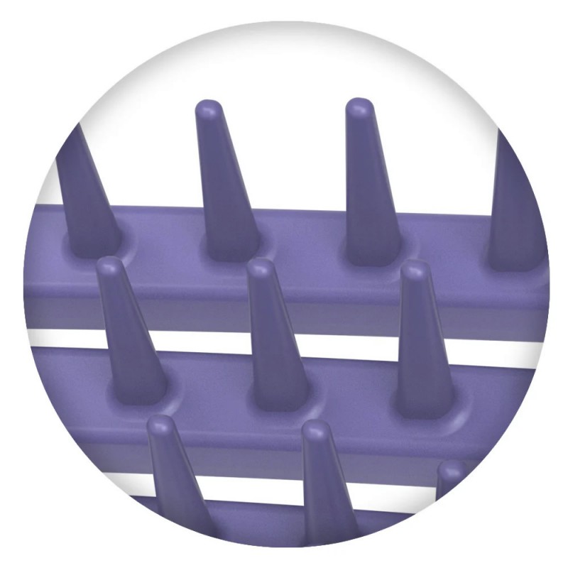 Wide cone-shaped bristles easily glide into curls. Slightly stiffer material to get through a tighter curl pattern and higher density.
