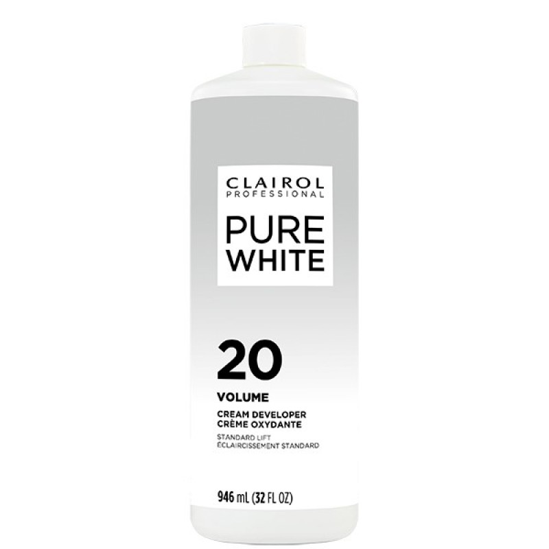 Clairol Professional pure white crème developer contains protective conditioners and emollients and is stabilized for 3 years. It is designed for use with permanent colors, and also perfect for use with all powder and liquid lighteners. Its creamy consistency makes it ideal for bowl-and-brush or bottle application.