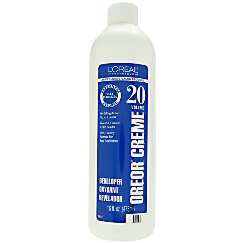 L'Oreal Oreor 20 Volume Creme Developer mixes easily with chosen haircolor to provide desired tone or shade when lightening up to 2 levels. Assured consistent, uniform color and bleach results. A Thick, rich mixture consistency for easier application. Product stays where applied. Guaranteed freshness because it's fully stabilized.