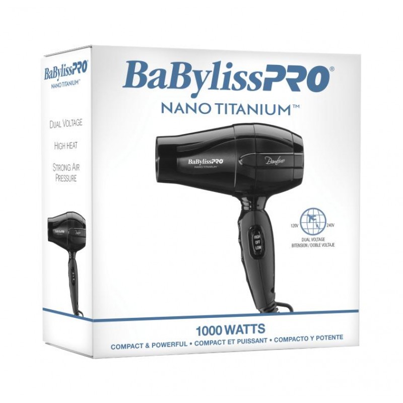 The ultra-lightweight design of this compact dryer provides 1000 watts of power, Nano Titanium™ technology.