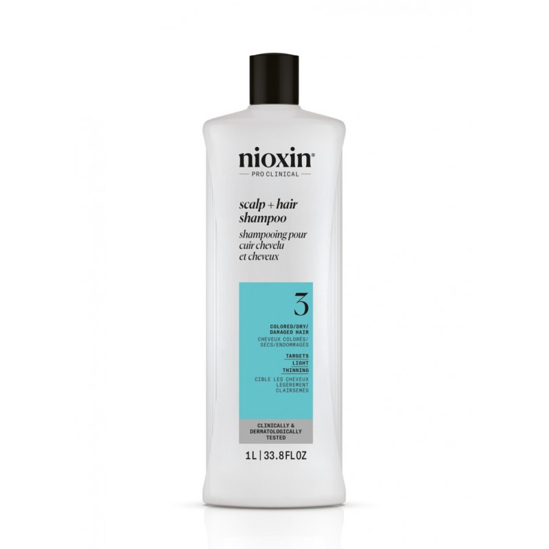 System 3 Shampoo is designed for dry, damaged, color-treated hair with light thinning.  Clinically and dermatologically tested, this shampoo nourishes and gently cleanses your hair to prevent against follicle-clogging sebum, resulting in thicker, fuller hair.