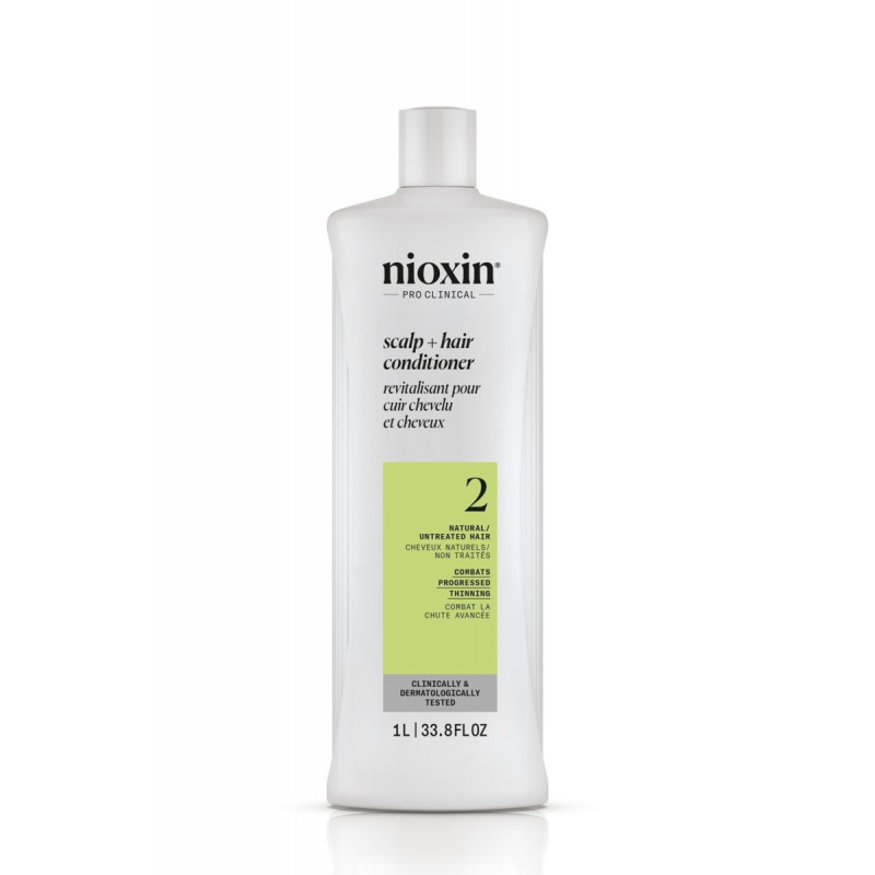 System 2 Conditioner is designed for natural, untreated hair with progressed thinning. Clinically and dermatologically tested, this lightweight conditioner helps provide hair resilience, hydrates scalp and hair from root to tip.  Nioxin System 2 Conditioner enhances scalp health by promoting a healthy environment for hair growth.