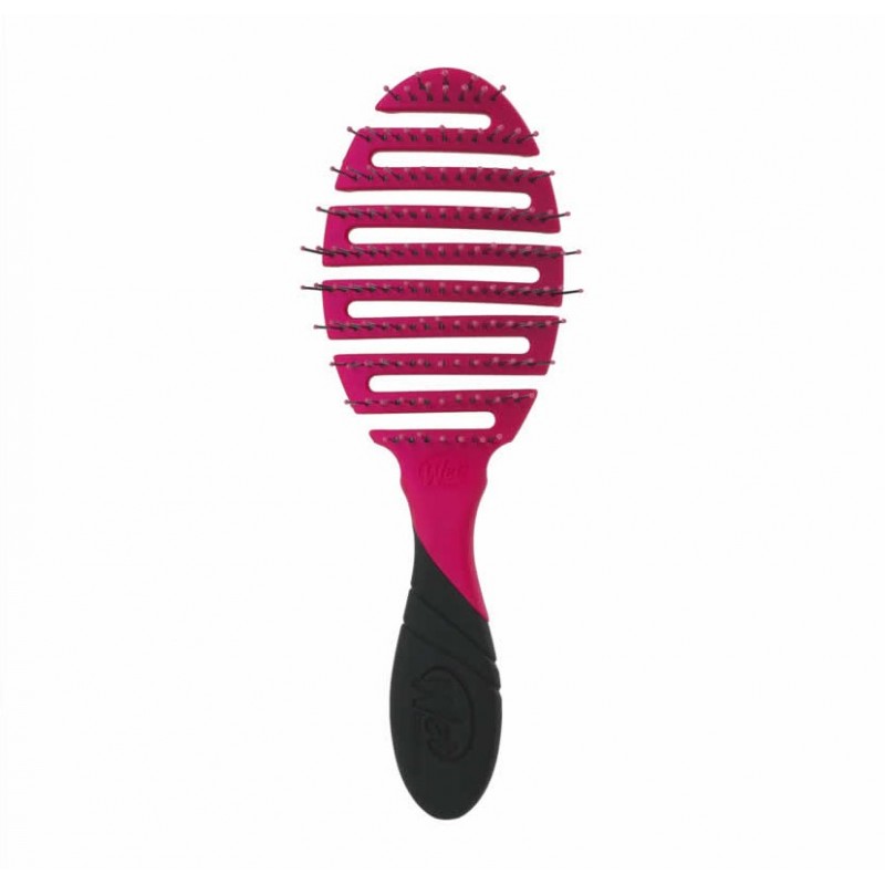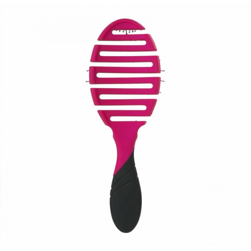 Flexible brush head contours to the scalp for comfort and styling control, while vented design speeds drying time.